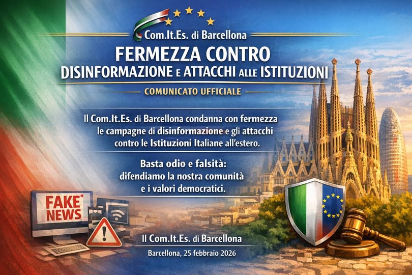 Il COM.IT.ES. (Comitato degli Italiani all’Estero) è l’organo di rappresentanza degli italiani residenti in Andorra, Aragona, Catalogna, Comunità Valenciana, Regione di Murcia e Baleari nei rapporti con il Consolato Generale di Barcellona.
